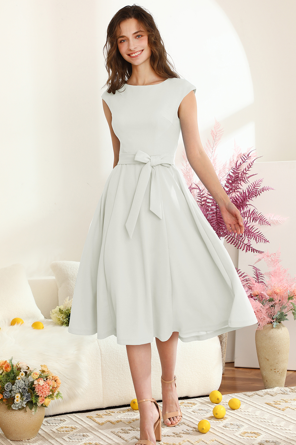 • [ Spring Summer Trendy 2025 ] This modest tea dress can be easily dress up or down! Cap sleeves will flatter your arms! Perfect A-line knee length fits to hide any pooch! This is a stretchy and flowy casual fit flare dress, so it will be comfy, limming at the waist without being tight. The western church dresses is cut to flow down and not snug against your stomach!