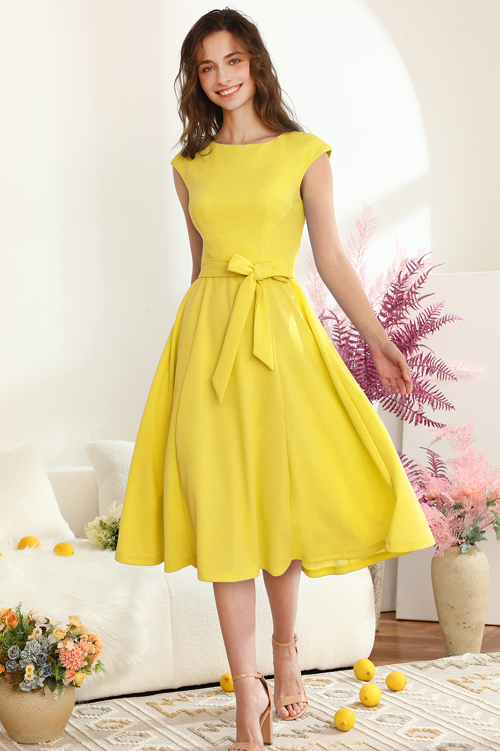 Elegant A-Line Knee-Length Yellow Cocktail Dress with Cap Sleeves
