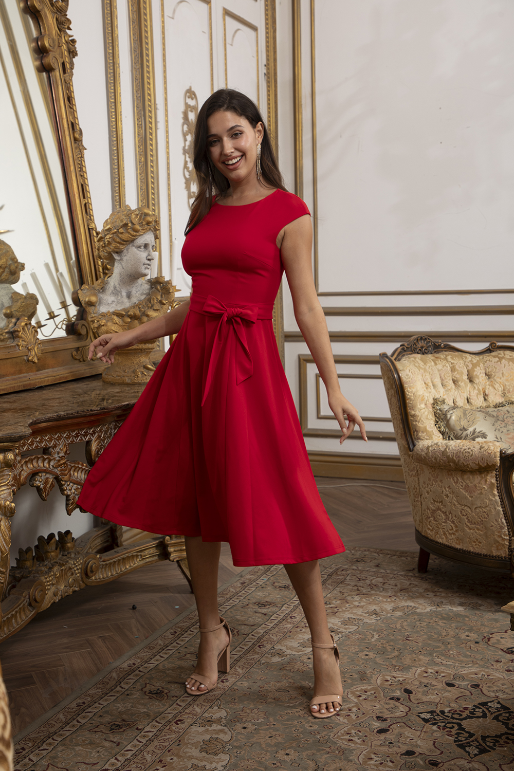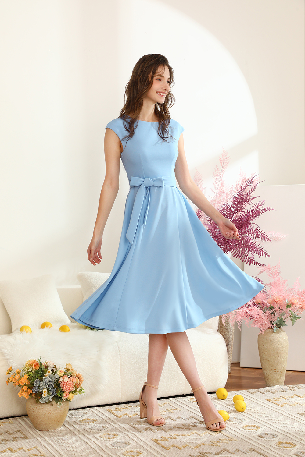 - [ Spring Summer Trendy 2025 ] This modest tea dress can be easily dress up or down! Cap sleeves will flatter your arms! Perfect A-line knee length fits to hide any pooch! This is a stretchy and flowy casual fit flare dress, so it will be comfy, limming at the waist without being tight. The western church dresses is cut to flow down and not snug against your stomach!
