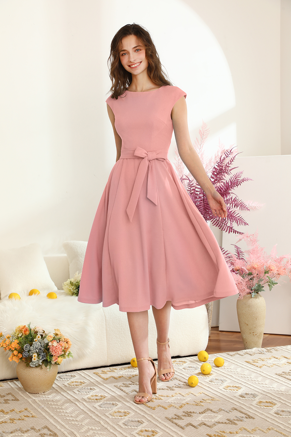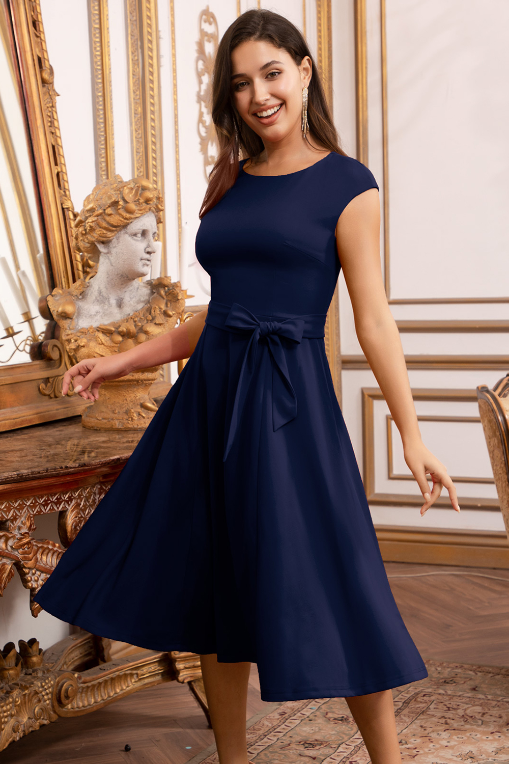 - [ Fancy Wedding Guest Dress ] Length: Mid Calf!!! XS=US 0-2; S=US 4-6; M=US 8-10; L=US 12-14; XL=US 14-16; 2XL=US 16-18; 3XL=US 20. This women's cocktail dress 2025 is perfect for daily work, which will help you balance your weekend fun and work dress needs. Tea length, aline shape, decorative belt - all these designs are for your semi formal needs!