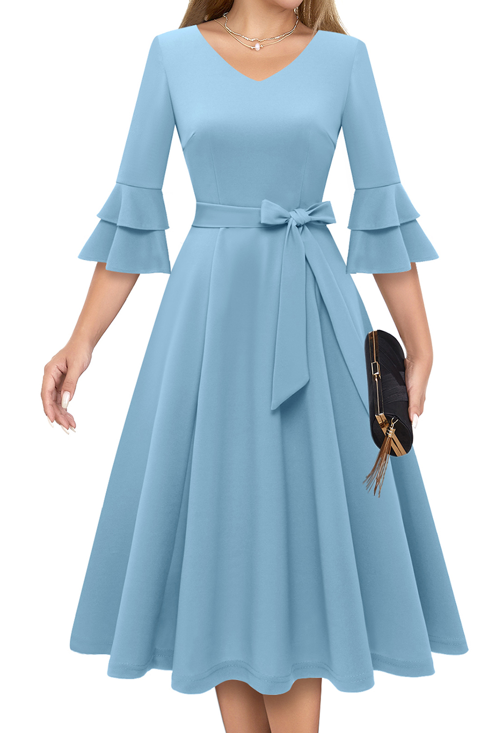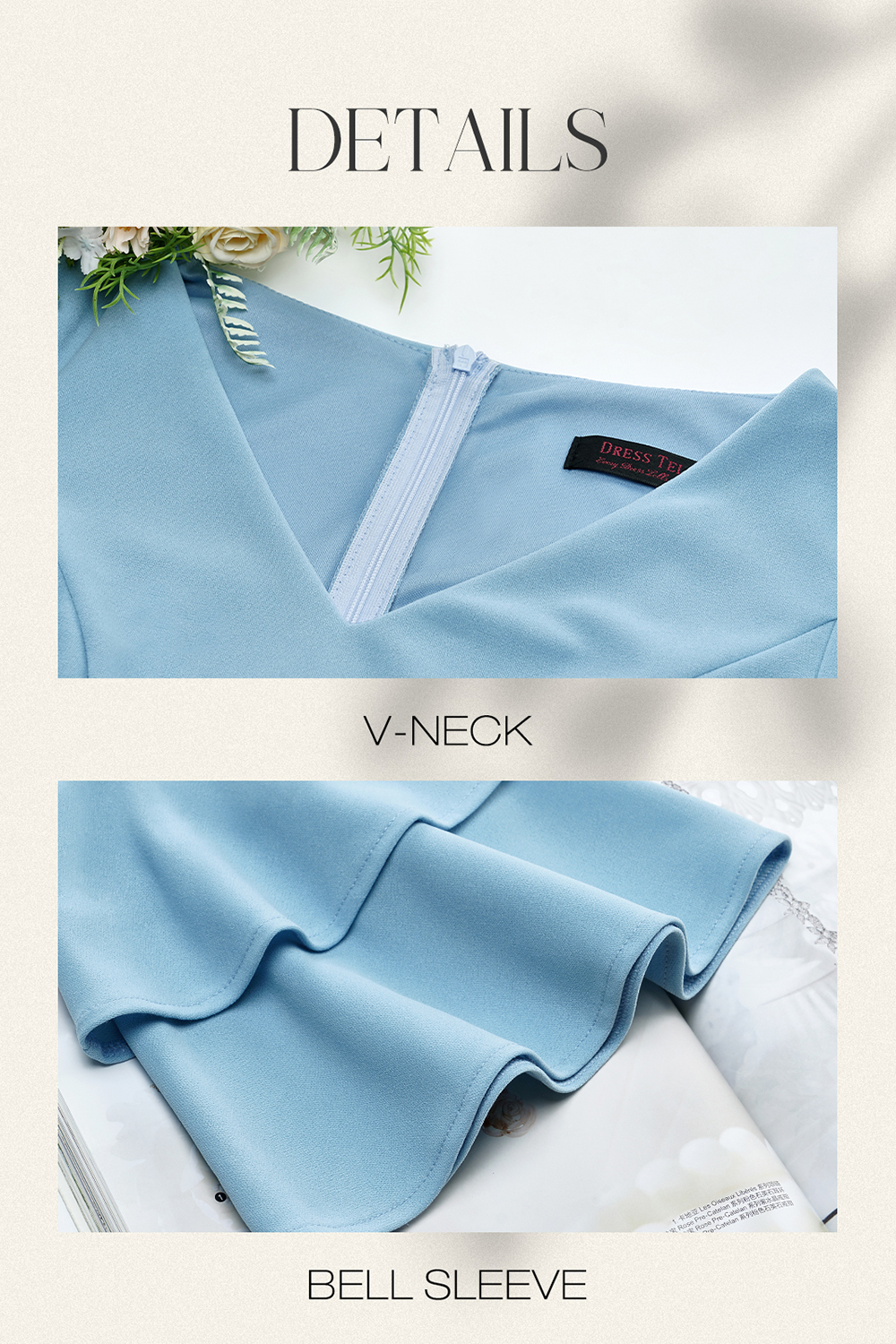 • 💞【Designed for Comfort and Elegant】This beautiful dress is made of highly breathable skin-friendly fabric that will keep you feeling comfortable and elegant for a long time. V-Neck, 3/4 bell sleeves and a fitted waistline that accentuates your curves in all the right places and slim your arms nicely, creating an effortlessly flattering vintage look that's perfect for any season. Easily paired with a variety of accessories, this cocktail dress is a must-have for any wedding guest closet!