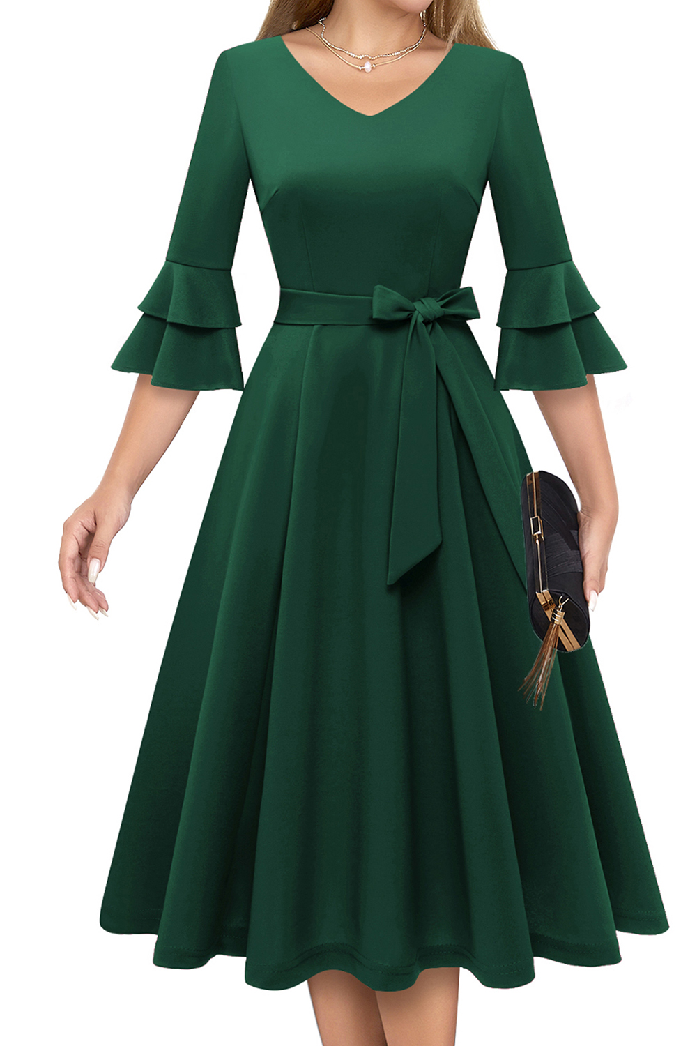 • 💞【Designed for Comfort and Elegant】This beautiful dress is made of highly breathable skin-friendly fabric that will keep you feeling comfortable and elegant for a long time. V-Neck, 3/4 bell sleeves and a fitted waistline that accentuates your curves in all the right places and slim your arms nicely, creating an effortlessly flattering vintage look that's perfect for any season. Easily paired with a variety of accessories, this cocktail dress is a must-have for any wedding guest closet!