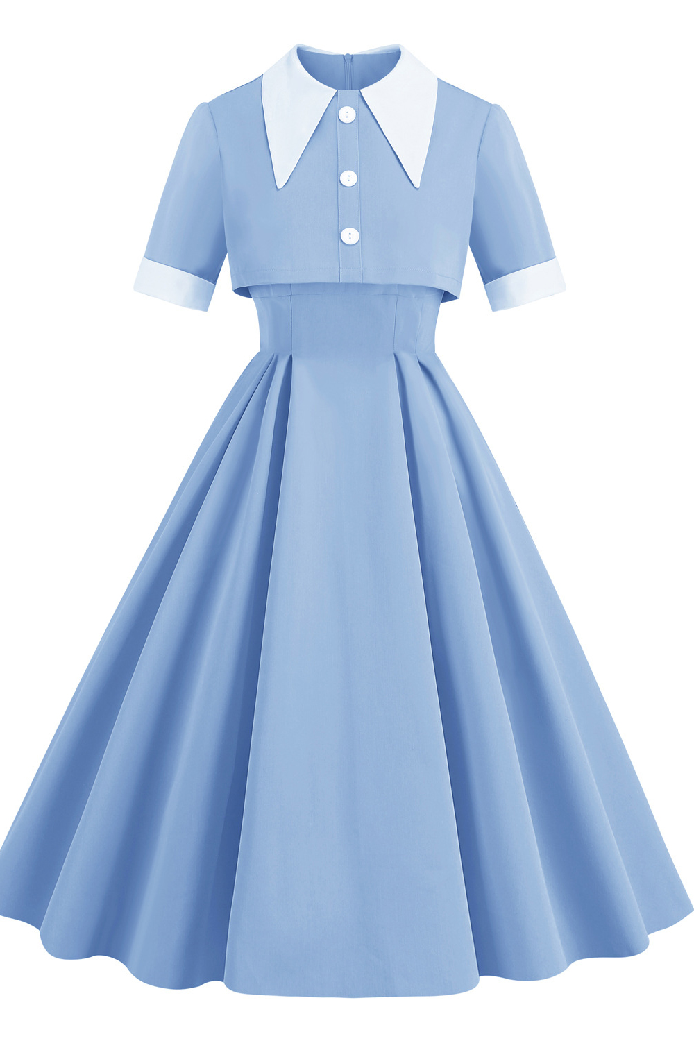 Vintage 1950s Blue A-Line Two-Piece Swing Dress
