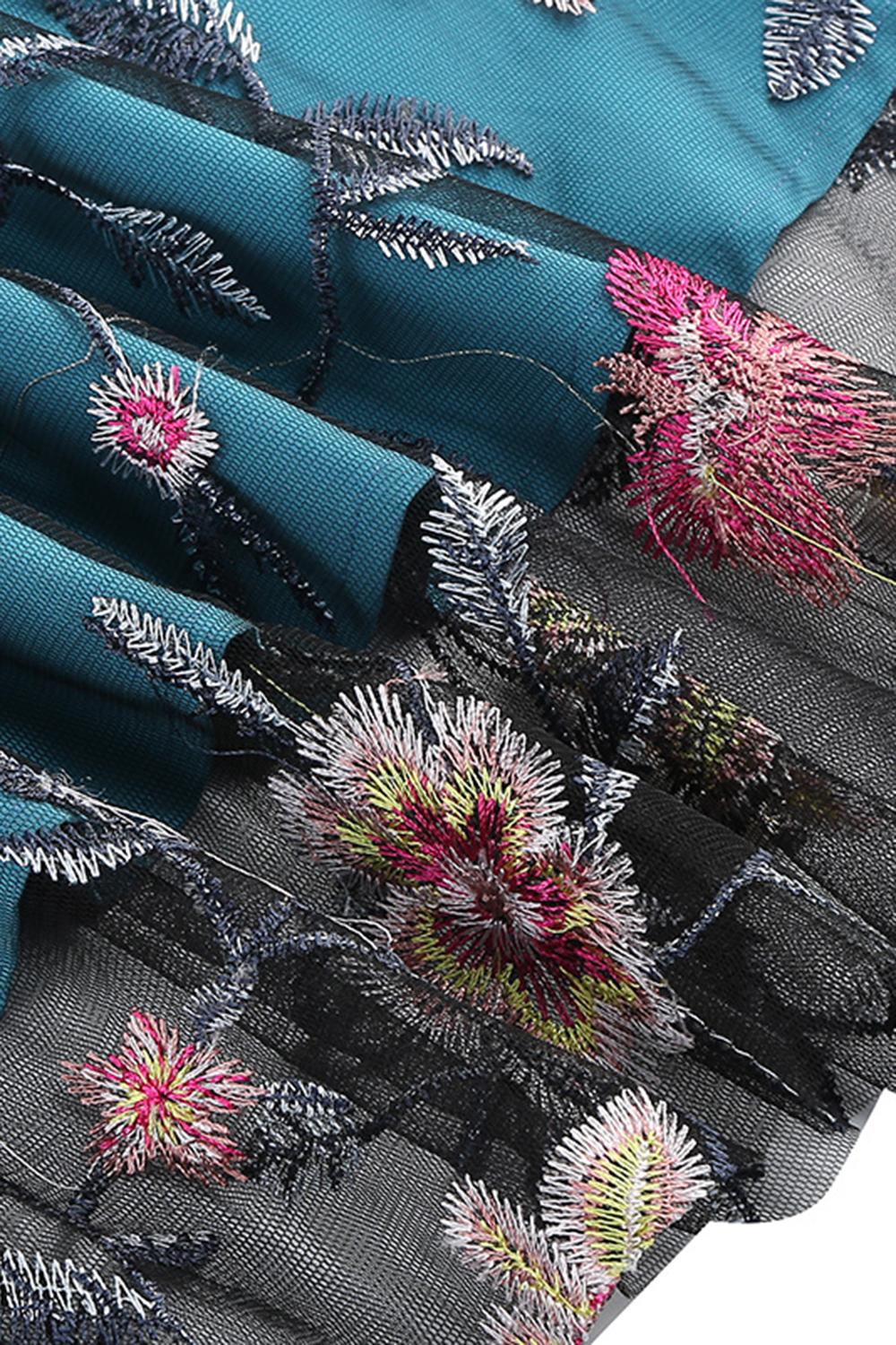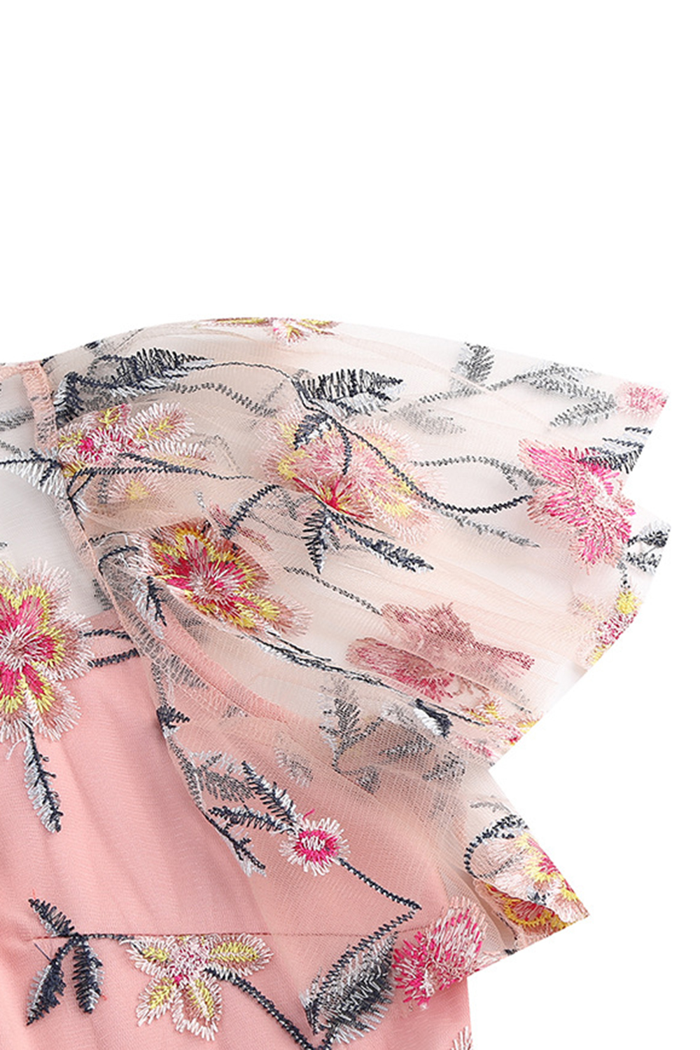 Exquisite Floral Appliqués: Adorned with detailed floral appliqués, this dress adds a touch of romance and uniqueness, ensuring you stand out at any event.