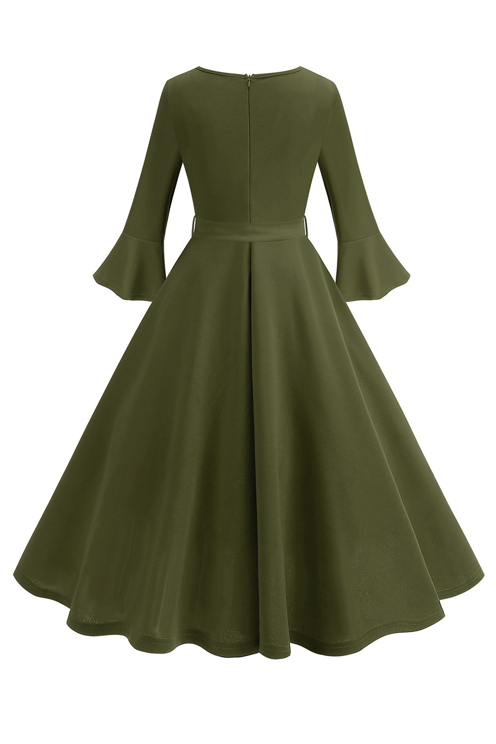 - Elegant Design: This dress features a sophisticated round neck and trumpet flared long sleeves, offering a timeless and graceful silhouette.