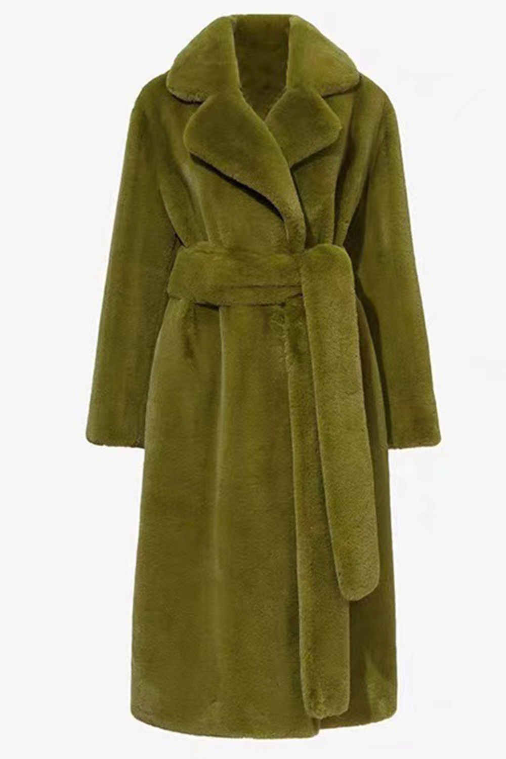 Fluffy Yellow Notched Lapel Faux Fur Long Coat