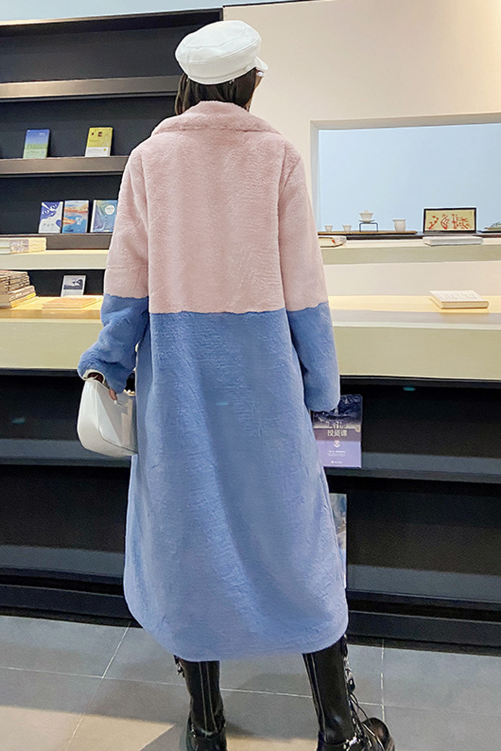 Fuchsia and Orange Fluffy Faux Fur Long Coat