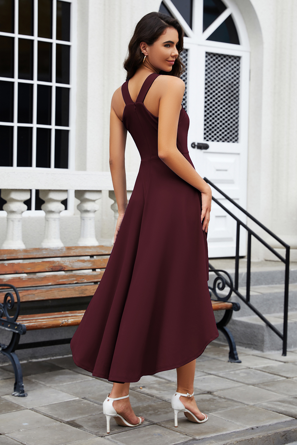 2025 Burgundy Halter High-low Cocktail & Party Dress