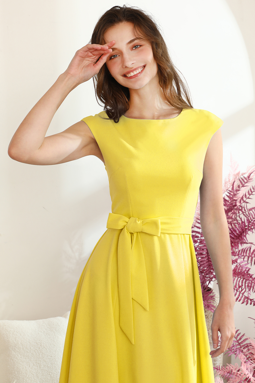 Elegant A-Line Knee-Length Yellow Cocktail Dress with Cap Sleeves