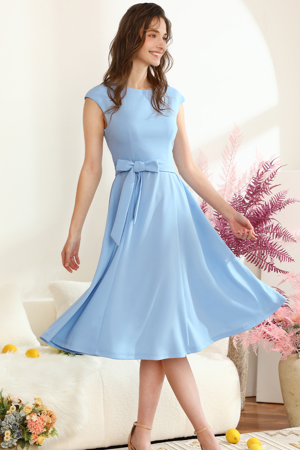 • [ Spring Summer Trendy 2025 ] This modest tea dress can be easily dress up or down! Cap sleeves will flatter your arms! Perfect A-line knee length fits to hide any pooch! This is a stretchy and flowy casual fit flare dress, so it will be comfy, limming at the waist without being tight. The western church dresses is cut to flow down and not snug against your stomach!