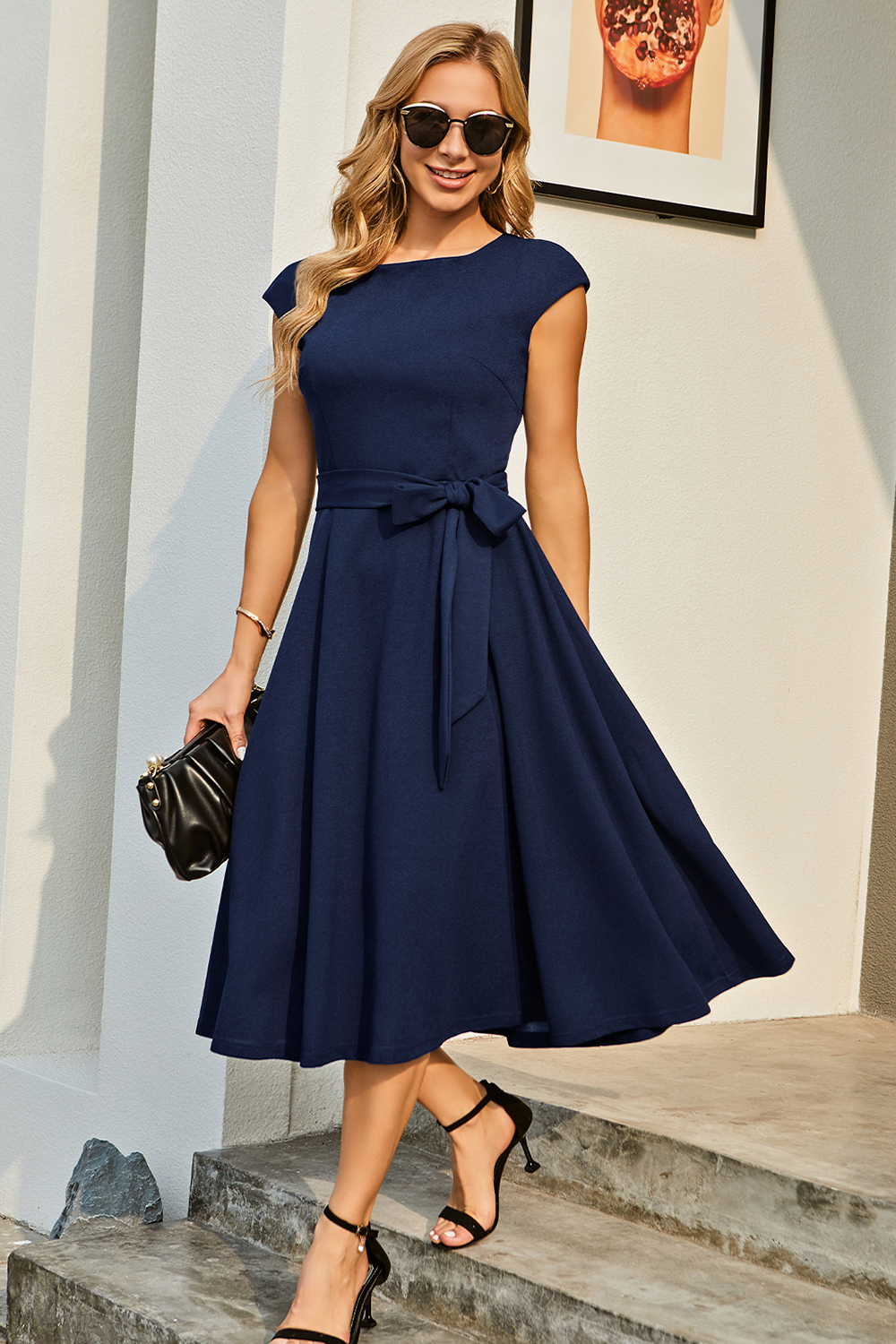 - [ Fancy Wedding Guest Dress ] Length: Mid Calf!!! XS=US 0-2; S=US 4-6; M=US 8-10; L=US 12-14; XL=US 14-16; 2XL=US 16-18; 3XL=US 20. This women's cocktail dress 2025 is perfect for daily work, which will help you balance your weekend fun and work dress needs. Tea length, aline shape, decorative belt - all these designs are for your semi formal needs!