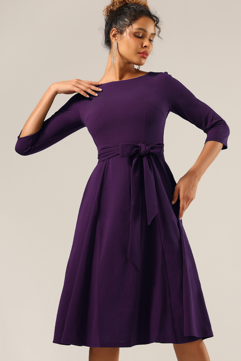 Elegant 3/4 Sleeve A-Line Grape Vintage Cocktail Dress