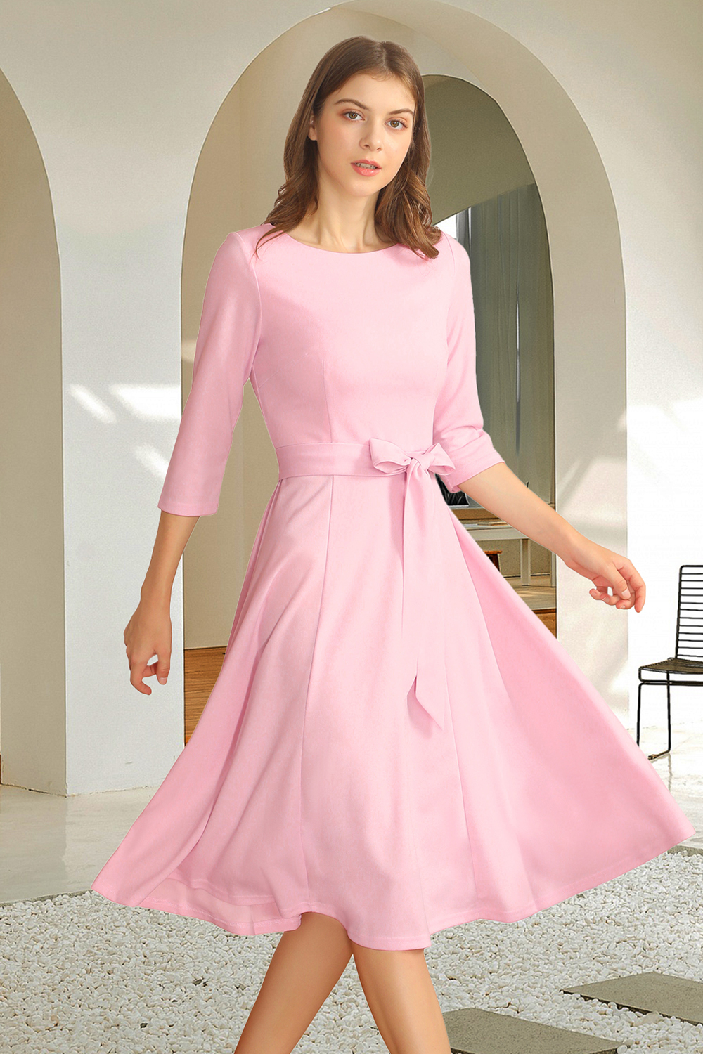 Elegant 3/4 Sleeve A-Line Pink Vintage Cocktail Dress
