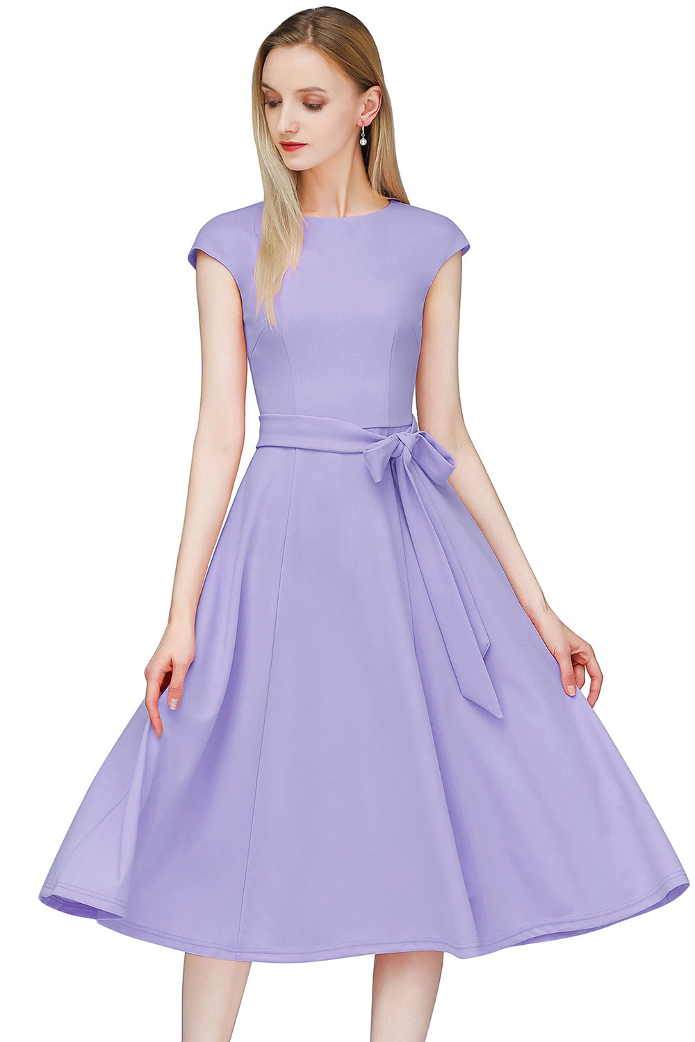 Elegant A-Line Knee-Length Lavender Cocktail Dress with Cap Sleeves