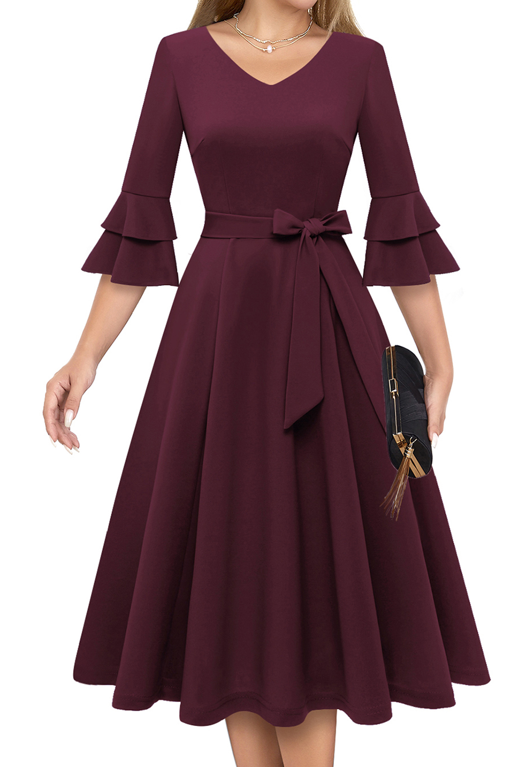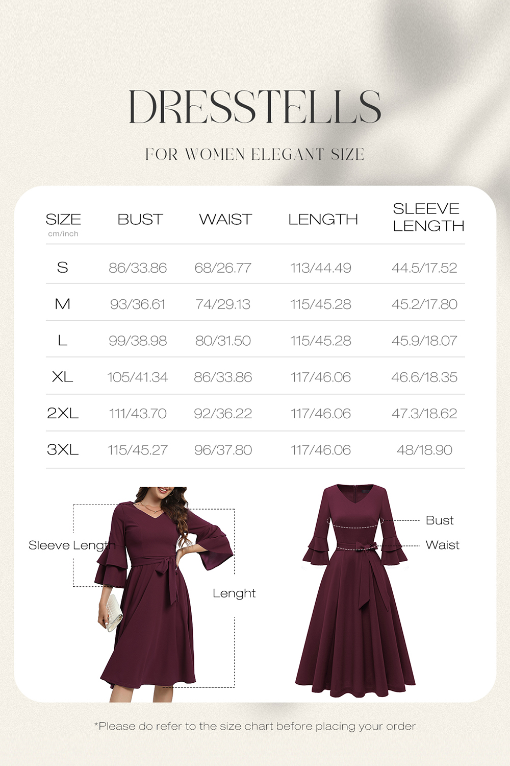 • 💞【Designed for Comfort and Elegant】This beautiful dress is made of highly breathable skin-friendly fabric that will keep you feeling comfortable and elegant for a long time. V-Neck, 3/4 bell sleeves and a fitted waistline that accentuates your curves in all the right places and slim your arms nicely, creating an effortlessly flattering vintage look that's perfect for any season. Easily paired with a variety of accessories, this cocktail dress is a must-have for any wedding guest closet!