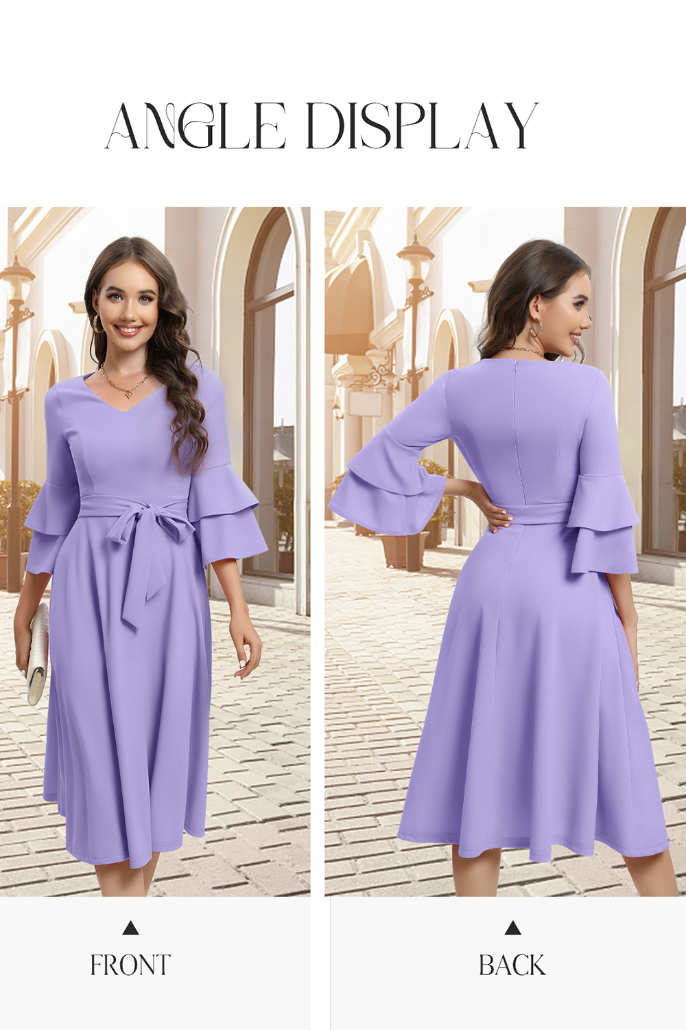 • 💞【Exquisite Details of a Formal Dresses 】The mid-length A-line hemline design gives the dress classic femininity will mesmerize onlookers. The carefully crafted decorative waistband add a touch of elegance and accentuates your waistline, with the unique stylish double bell sleeves creating a fashionable and exquisite look that will make you the center of attention! (Belt Tie on Details Page) Please take photos in this versatile church dress.