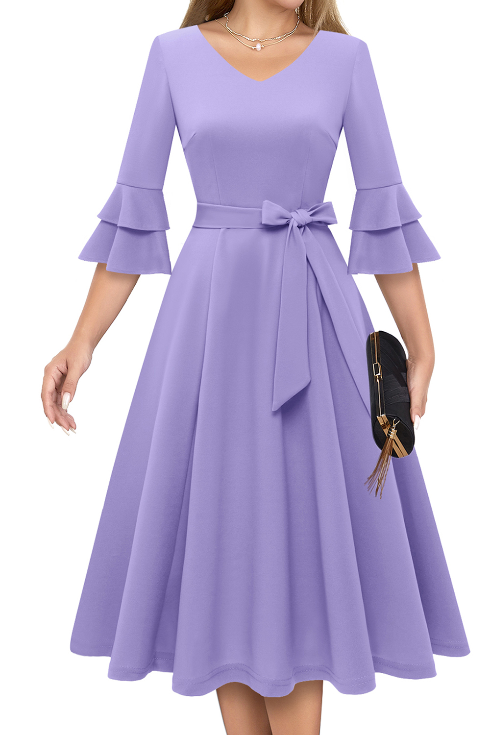 • 💞【Designed for Comfort and Elegant】This beautiful dress is made of highly breathable skin-friendly fabric that will keep you feeling comfortable and elegant for a long time. V-Neck, 3/4 bell sleeves and a fitted waistline that accentuates your curves in all the right places and slim your arms nicely, creating an effortlessly flattering vintage look that's perfect for any season. Easily paired with a variety of accessories, this cocktail dress is a must-have for any wedding guest closet!
