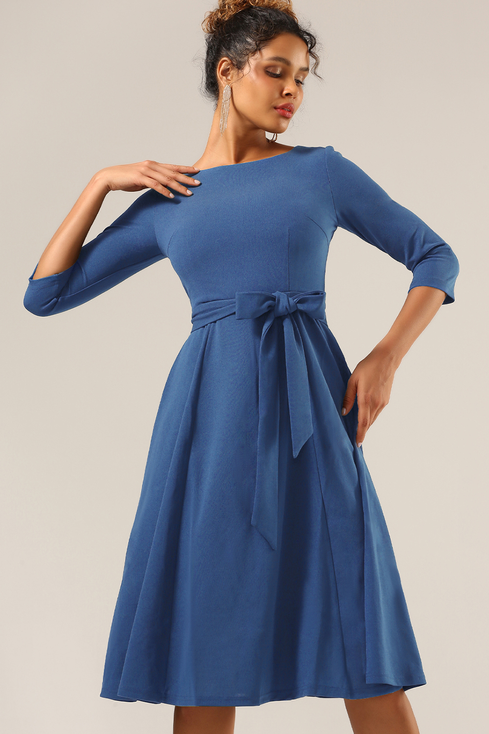 Elegant 3/4 Sleeve A-Line Grey Blue Vintage Cocktail Dress