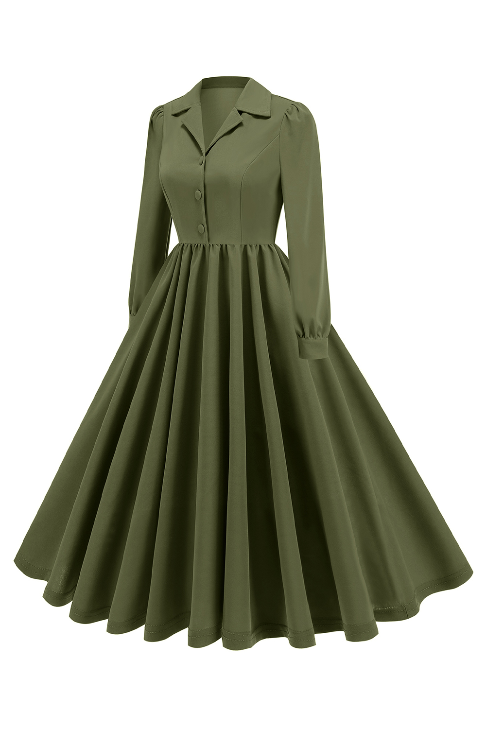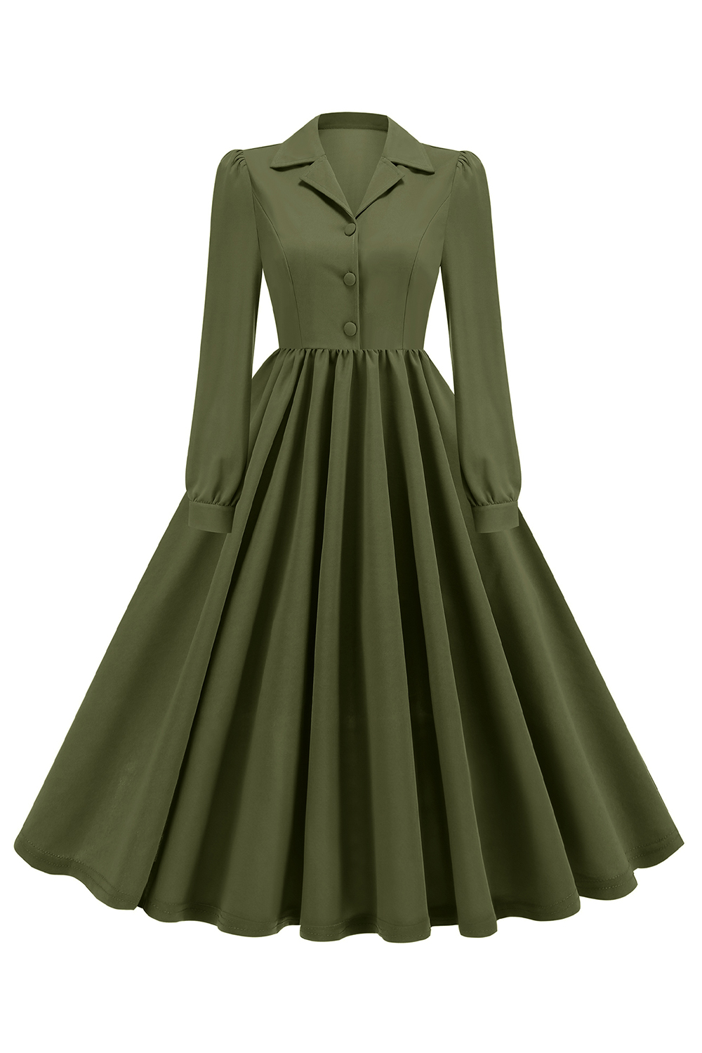 Step into timeless elegance with this notched lapel long-sleeve solid color A-line dress. Featuring delicate pleated details and a classic button-up front, this versatile dress combines sophistication with comfort. Perfect for both casual and formal occasions, it offers a flattering fit and effortless style. Elevate your wardrobe with this chic and refined A-line long dress, available in a variety of colors.