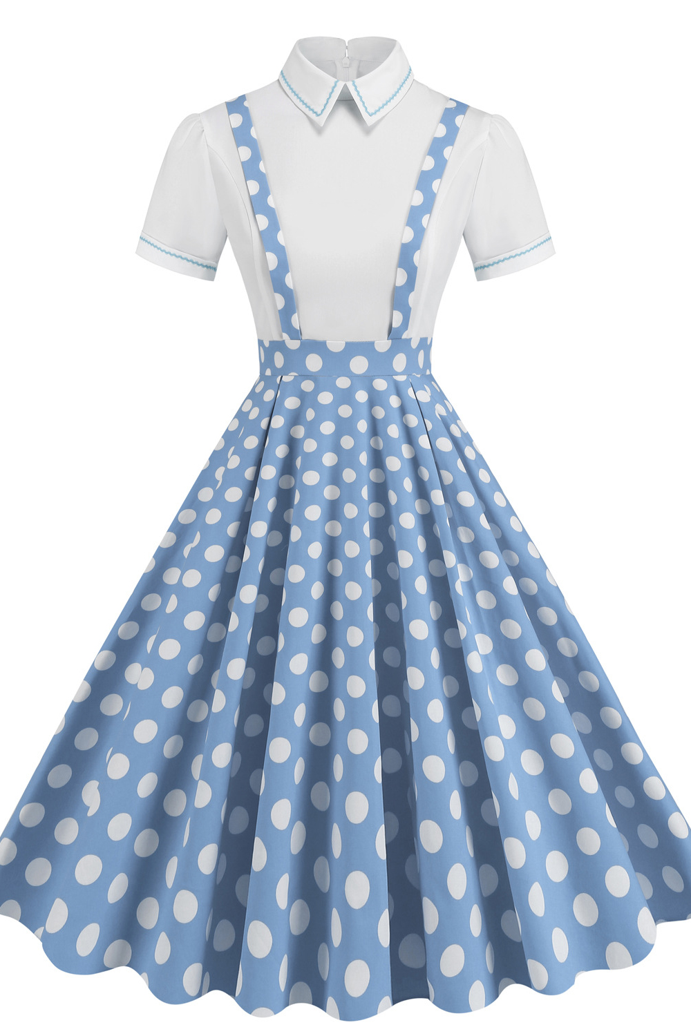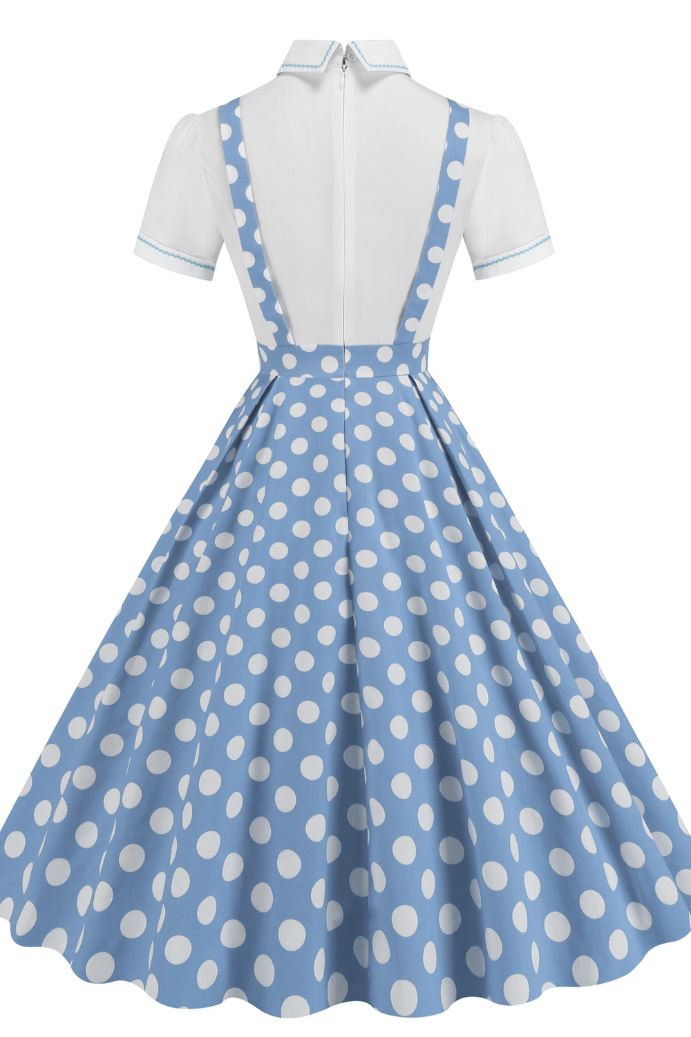 Vintage Blue 1950s A-Line Swing Dress with Suspenders