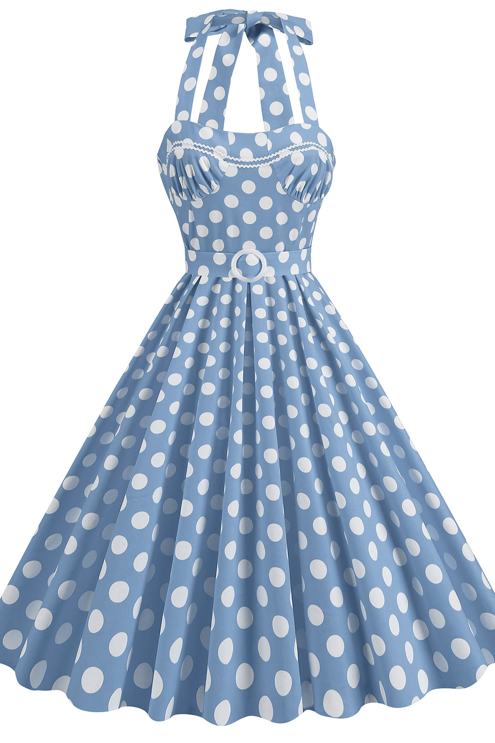 Vintage Blue 1950s A-Line Swing Dress with White Dot
