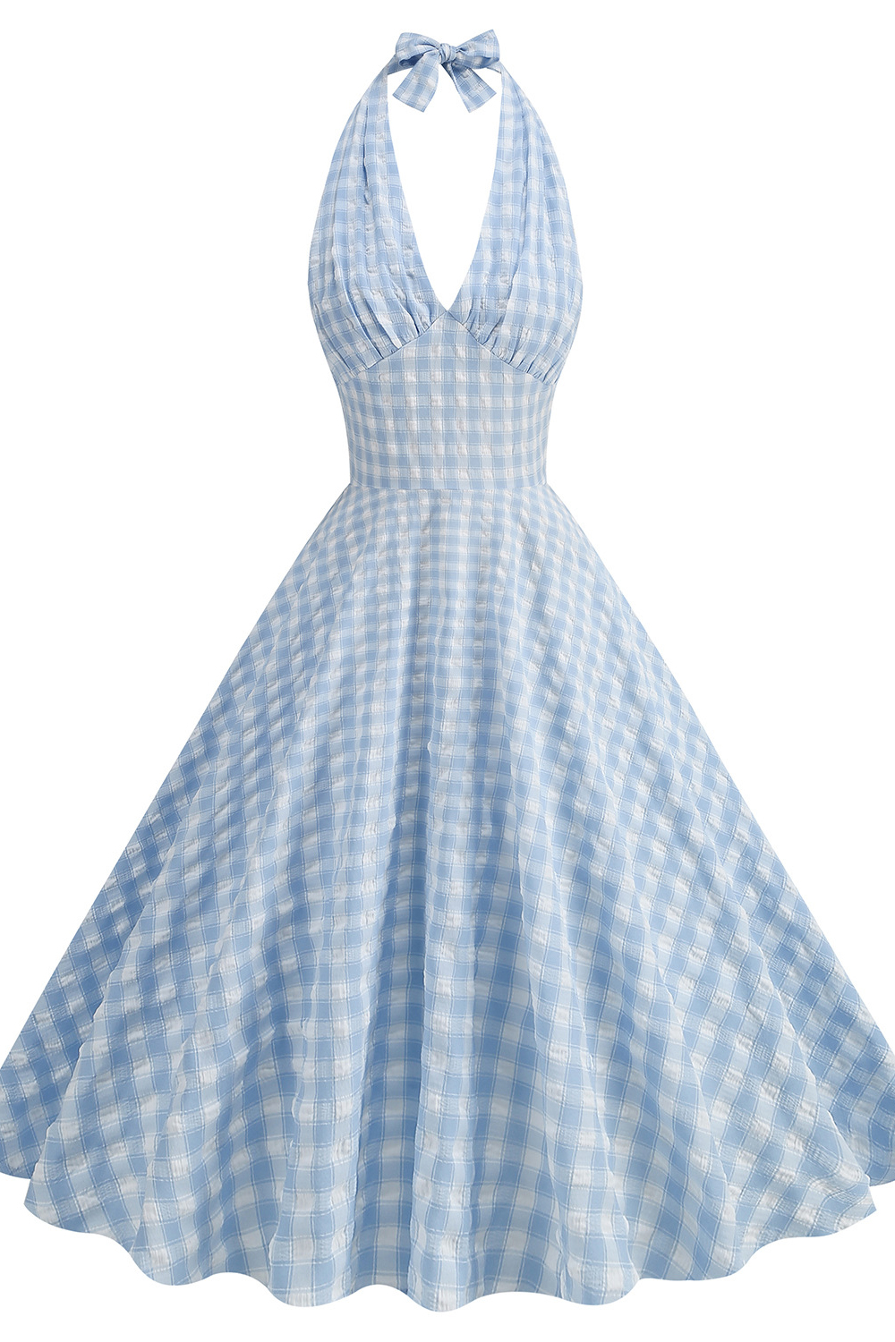 Vintage Elegant Blue Halter A Line 1950s Swing Dress