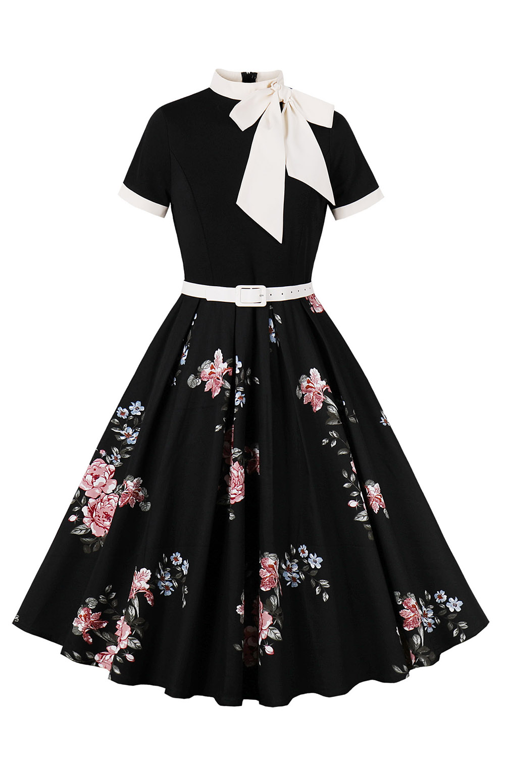 Classic Floral Cocktall Dress with Bow Tie Scarf