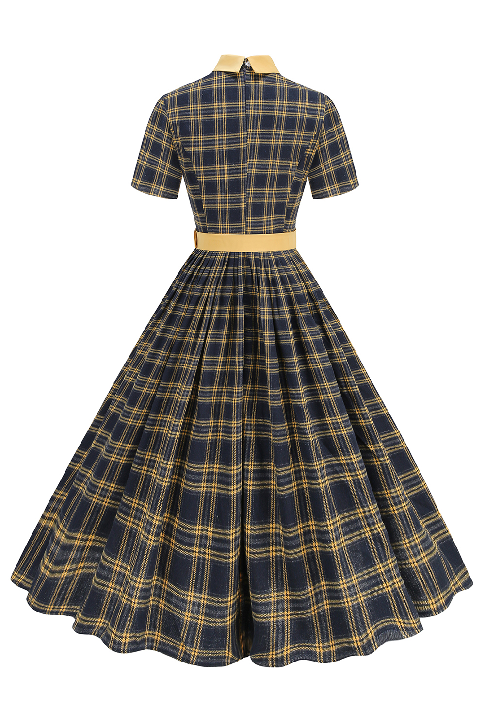 Vintage Elegant Green Grid A Line 1950s Swing Dress with Belt