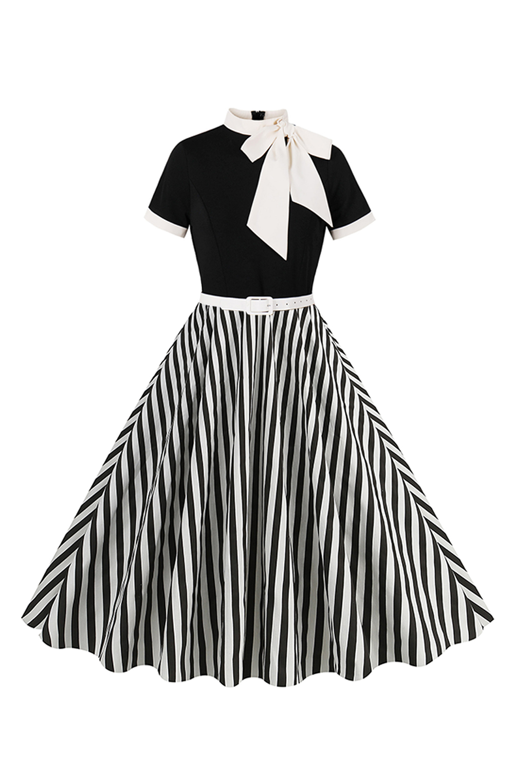Unique Stripe Cocktall Dress with Bow Tie Scarf