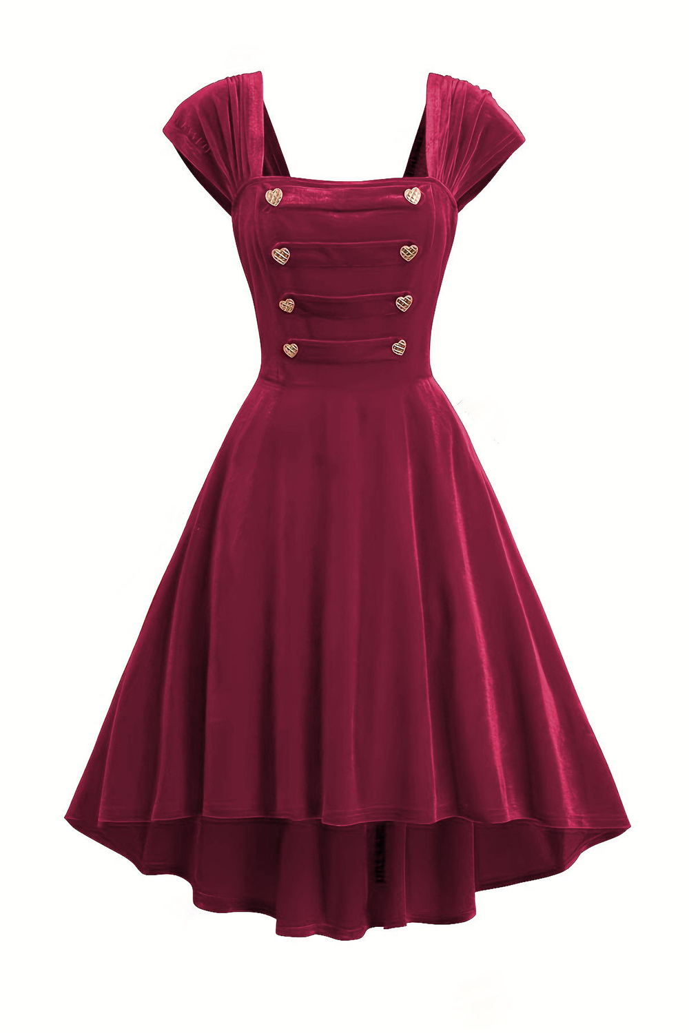 Classic Velvet Belted Square Neck A-Line Tintage Dress