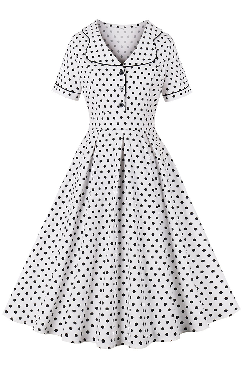 Versatile Vintage White Casual, Formal/Party Occasions Dress with Polka Dot