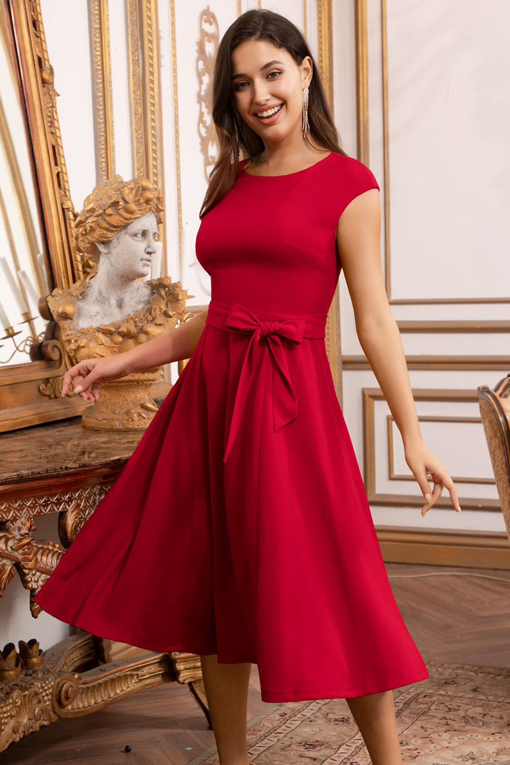 • [ Spring Summer Trendy 2024 ] This modest tea dress can be easily dress up or down! Cap sleeves will flatter your arms! Perfect A-line knee length fits to hide any pooch! This is a stretchy and flowy casual fit flare dress, so it will be comfy, limming at the waist without being tight. The western church dresses is cut to flow down and not snug against your stomach!