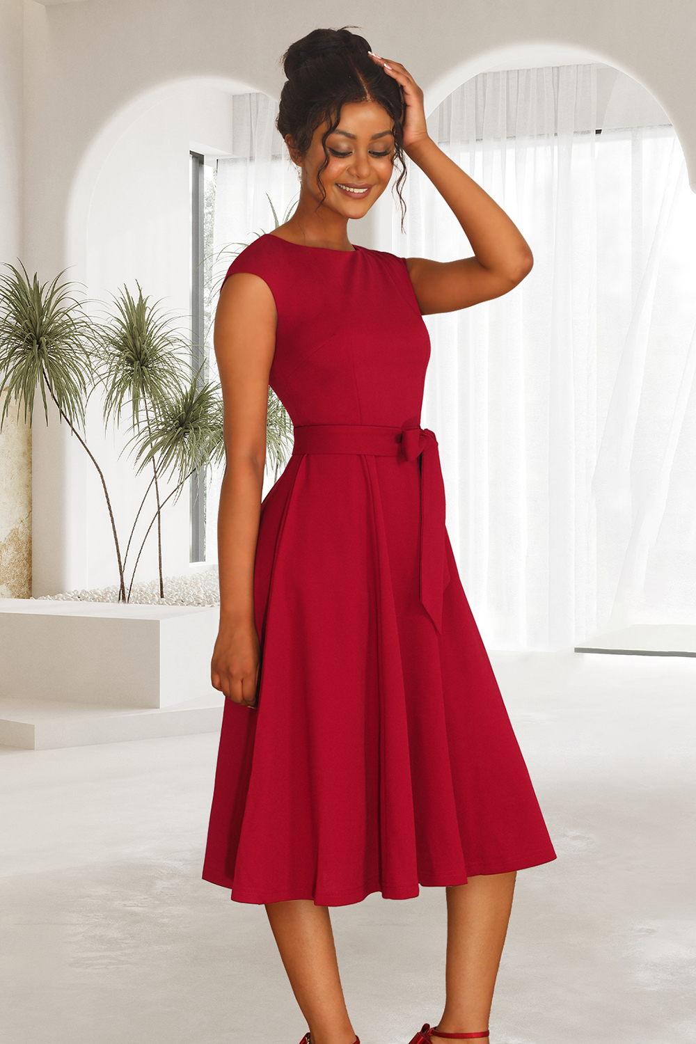 Elegant A-Line Knee-Length Red Cocktail Dress with Cap Sleeves