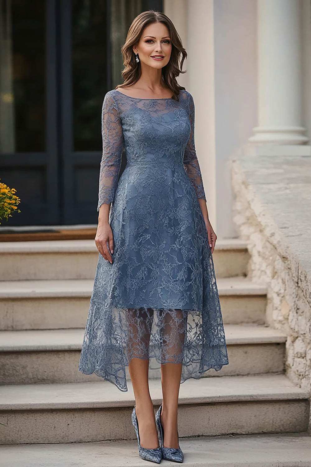 Dusty Blue Lace A-Line Long Sleeves Midi Mother of the Bride Dress